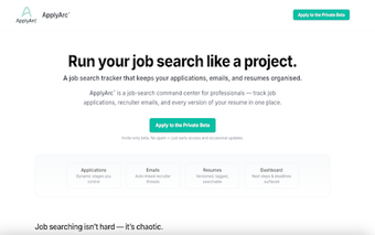 ApplyArc เป็นส่วนขยาย Chrome ฟรีที่ออกแบบมาเพื่อทำให้กระบวนการค้นหางานง่ายขึ้นโดยอนุญาตให้ผู้ใช้จัดการใบสมัครของตนในที่เดียว เครื่องมือนี้ช่วยให้เข้าถึงรายการงานได้ง่ายและช่วยให้ผู้ใช้เตรียมโปรไฟล์สำหรับฟีเจอร์เบราว์เซอร์ที่จะมาถึง ออกแบบมาโดยเฉพาะสำหรับผู้หางาน ApplyArc มีเป้าหมายเพื่อปรับปรุงประสบการณ์โดยรวมในการนำทางตลาดงาน